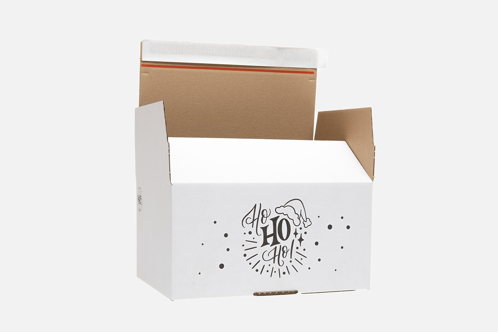 Der praktische Karton mit dem Automatikboden und Selbstklebeverschluß - Bedruckt mit weihnachtlichem Motiv